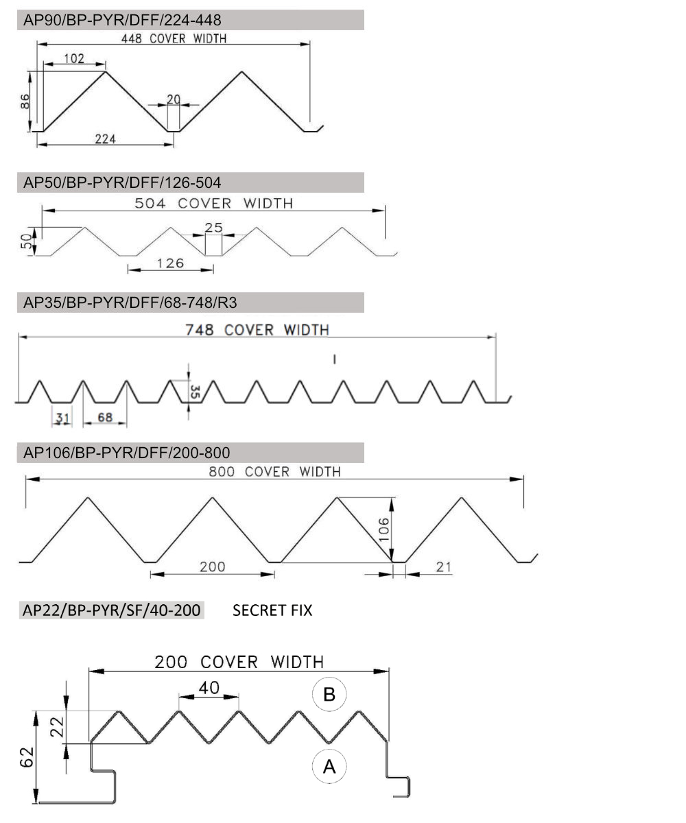 Our Custom profiles allow designers to choose their required colour, shape, finish and dimensions to deliver a result not achievable with standard roll-formed product. We can meet your specific project requirements within each shape range in terms of depth, pitch and outline.